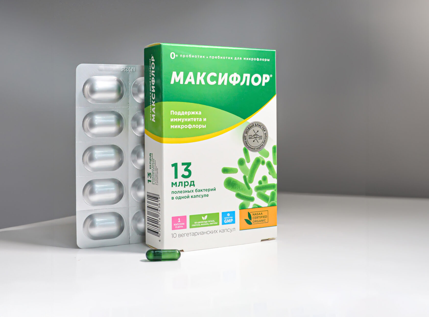 Благодаря блистеру и запатентованным технологиям защиты бактерии в пробиотиках Максифлор сохраняют жизнеспособность до конца срока годности без добавления консервантов.
